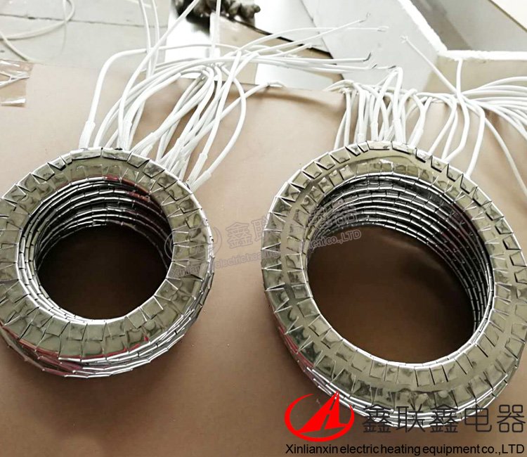 以不銹鋼板為外殼,中間以高絕緣性耐高溫的云母板為絕緣,均勻繞以各種標準規格的鎳鉻合金電阻絲作為發熱體,經成型機加工成各式所需形狀。不銹鋼加熱圈可根據用戶需求的接線方式加接線盒、不銹鋼插頭、熨斗插座等,電壓12-440V,最高功率負載每平方3.5W。將外散熱面增加保溫裝置,內散熱面燒結紅外線這樣可節約用電35%。不銹鋼云母加熱器有圈型和板狀,異型等規格。